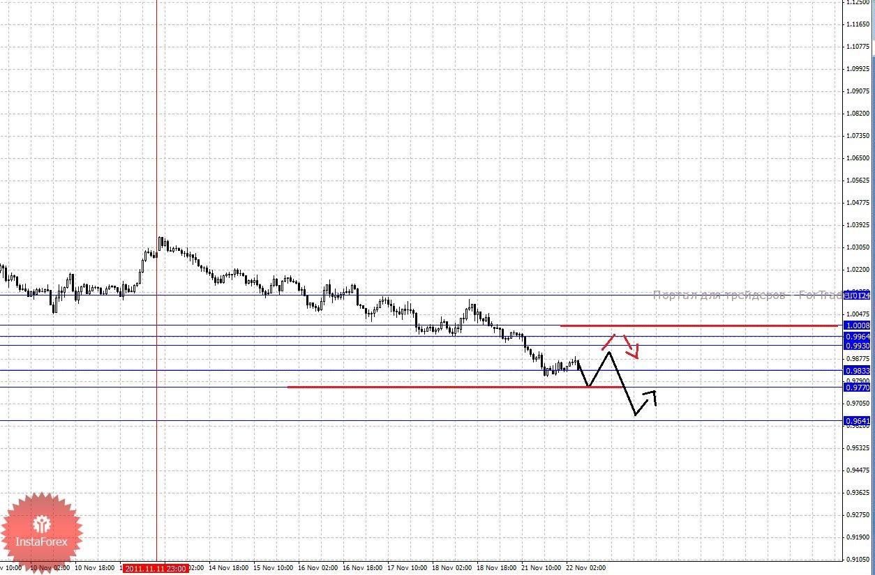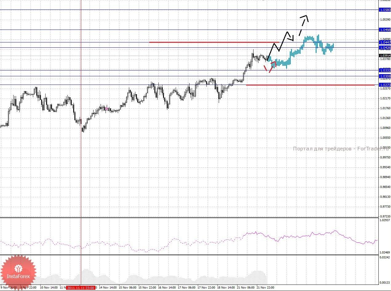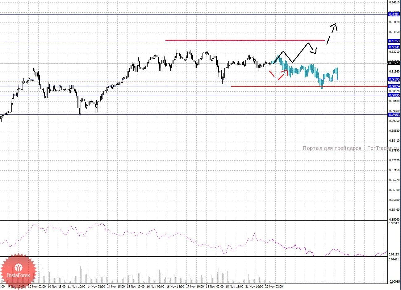 По паре Доллар/Канадский доллар ключевыми уровнями являются: 1.0580, 1.0498, 1.0447, 1.0426, 1.0332, 1.0308 и 1.0273. Здесь мы продолжаем следить за восходящей структурой от 11 ноября. Продолжения движения к верху, ожидаем после прохода ценой шумового диапазона 1.0426 – 1.0447, в данном случае цель 1.0498, возле этого уровня консолидация цены. Потенциальным значением для верха считаем уровень 1.0580, однако движение к нему рассматриваем как неустойчивое. Корректировочное нисходящее движение возможно в диапазоне 1.0332 – 1.0308, пробой последнего значения приведет к углубленной коррекции, здесь цель 1.0273, по достижении этого уровня ожидаем консолидацию.