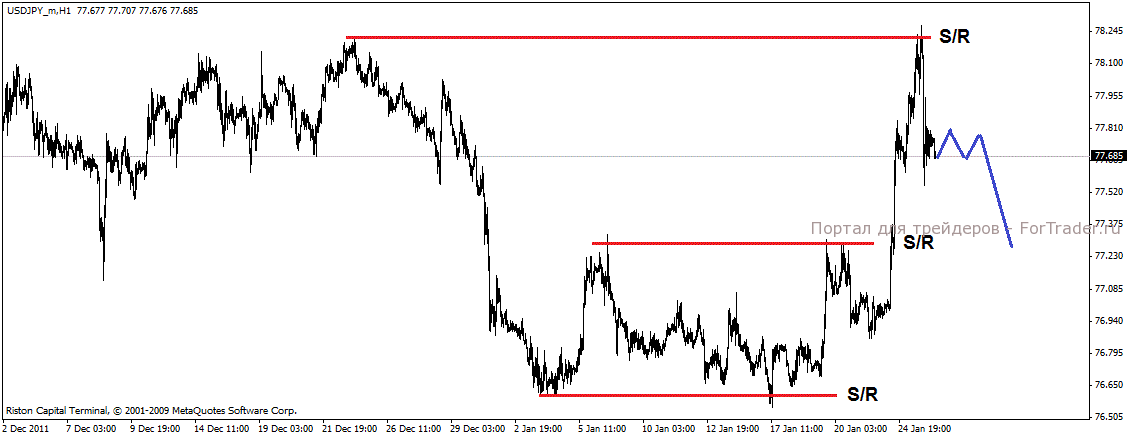 Цена USD/JPY отбилась от сопротивления и пошла вниз