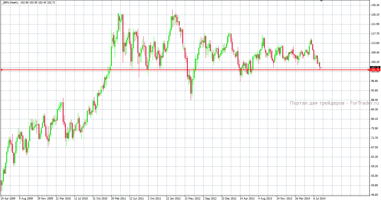 Сегодня днем Brent с поставкой в октябре торгуется на уровне $102,7 за баррель, WTI на отметке $96,6 за баррель. Опуститься дальше котировкам не дает техническая поддержка. Если в ближайшее время внешний фон не будет способствовать росту, то «медведям» удастся пробить её и пойти ещё ниже.
