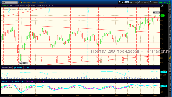 Рынок палладия под влиянием вышеперечисленных событий вырос до уровня 822$, от которого наблюдается небольшая коррекция вниз. Инвестиционный спрос при росте цен начинает сокращаться.