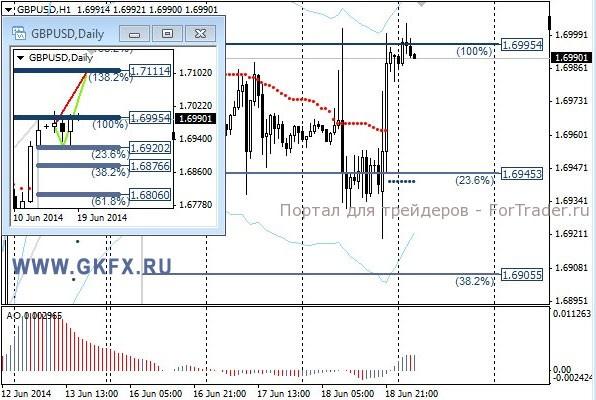 Пара GBPUSD совершала резкие колебания и в итоге снижалась после публикации протоколов Банка Англии. Сделка по рекомендации исполнена не была. Цены только коснулись ключевой отметки 1,7000. После заседания ФРС пара вновь поднялась к ключевой отметке и крутится возле нее. Очень вероятно, что данный уровень будет пройден. Это предусматривает сценарий, по которому сейчас пара движется. На эту неделю традиционно рассматриваю два варианта возможного движения цены, основной красный и альтернативный зеленый. Значимые уровни на сегодня отмечены на часовом графике. Индикатор АО находится в положительной зоне и снижается, указывая на коррекцию перед возможным продолжением роста. Индикатор тренда указывает на рост. Преодоление 1,7005 позволит купить с целями 1,7035, 1,7055 и 1,7110.