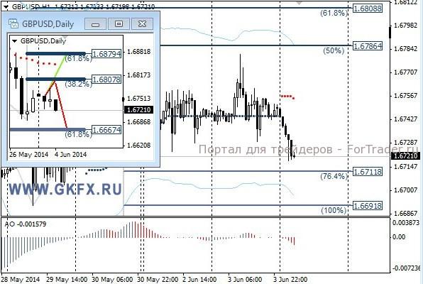 Пара EURUSD продолжила торговлю в диапазоне 1,3585-1,3650. Вероятно, до результатов заседания ЕЦБ пара будет оставаться в рамках этого диапазона. Заседание состоится только в четверг, поэтому, сегодня не стоит ожидать каких-либо движений за пределы диапазона. На случай неожиданного движения вниз оставляю рекомендацию на продажу. На эту неделю традиционно рассматриваю два варианта возможного движения цены, основной красный и альтернативный зеленый. Значимые уровни на сегодня отмечены на часовом графике. Индикатор АО находится в положительной зоне и снижается, указывая на коррекцию перед возможным продолжением роста. Индикатор тренда указывает на рост. Преодоление 1,3585 позволит продать с целями 1,3560, 1,3545 и 1,3515.