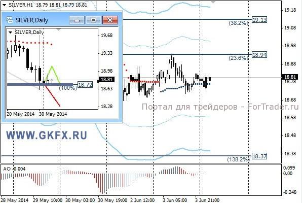 Цены на серебро зажимаются в треугольник, и возможен выстрел в ближайшее время. На этот случай даю рекомендацию на продажу в соответствии с ожиданиями. Традиционно делаю два варианта движения цены на неделю, основной красный и альтернативный зеленый. Значимые уровни на сегодня отмечены на часовом графике. Индикатор АО находится у нуля, указывая на неопределенность. Индикатор тренда указывает на рост. Преодоление 18,65 позволит войти в продажи с целями 18,40 и 18,10.