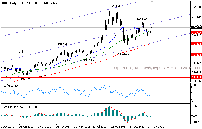 Федеральная резервная система США, Банк Канады, Банк Англии, Банк Японии, Европейский центральный банк и Швейцарский национальный банк пошли на неожиданный шаг, договорившись понизить стоимость долларовых свопов на 50 б.п. В результате этих действий стоимость заимствования в долларах снизится во всей мировой финансовой системе, которая страдает от продолжающегося долгового кризиса в Европе. Немногим ранее Китай принял решение о понижении резервных требований на 50 б.п., что, по сути, является смягчением денежно-кредитной политики с целью поддержания замедляющейся экономики. Все это привело к заметному улучшению настроений инвесторов и резкому росту рискованных активов, тогда как доллара США пошел вниз. В свою очередь золото получило всестороннюю поддержку как сырьевой товар, как инструмент хеджирования от инфляционных рисков, а также вследствие ослабления американской валюты.