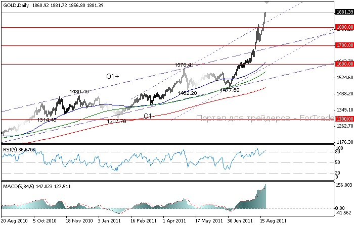 Интерес к покупкам металла в качестве актива-убежища остается высоким. Опасения относительно состояния американской экономики и европейских банков толкают котировки металла вверх к отметке 2000.00 долларов за унцию, поскольку золото рассматривается как один из активов, который, вероятнее всего, устоит на фоне ухудшающейся ситуации в мировой экономике. При этом все больше экспертов сходятся во мнении, что золоту удастся достигнуть отметки 2000.00 долларов в течение нескольких следующих недель, что привлекает и спекулятивных участников рынка к покупкам металла в расчете на краткосрочную прибыль. В то же время, подобный рост несет в себе значительную угрозу, поскольку фиксация прибыли способна спровоцировать резкую коррекцию.