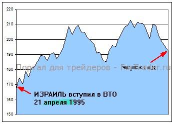 Из относительно крупных стран, опоздавших к первому дню можно выделить Израиль. Его дата вступления приходится на 21 апреля 1995 года. Рост местного фондового рынка начался буквально с первого дня. И через год составлял уже +11% (на максимуме было +25%).
