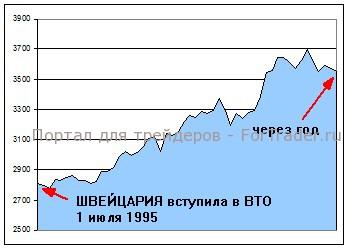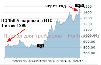 Еще лучший пример показала Польша. Через год после вступления в ВТО ее фондовый рынок вырос почти в два раза.
