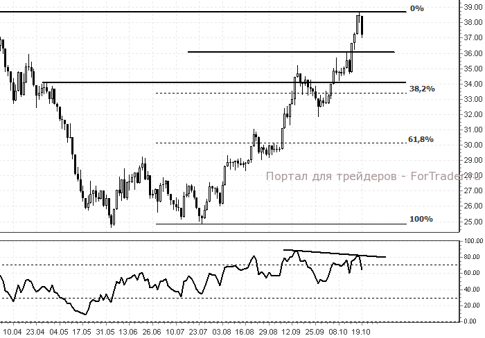 Торговая рекомендация: Рекомендуем продажу при пробое вниз уровня поддержки $36 за акцию. Цель: $34,00. Покупка возможна в случае отбоя вверх от уровня поддержки $36 с последующей целью $38.