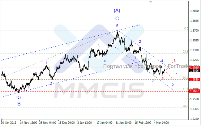Поэтому в качестве основного сценария развития событий можно рассматривать вариант, согласно которому пара возобновит снижение в направлении отметки 1.2880, где будет завершена пятая волна нисходящего импульса. В то же время нельзя исключать, что пятая волна завершилась в районе текущих минимумов. Поэтому альтернативный сценарий предполагает прорыв сопротивления 1.3080 и динамичный рост пары в направлении 32-й фигуры в виде первой волны «а» коррекционной тройки.