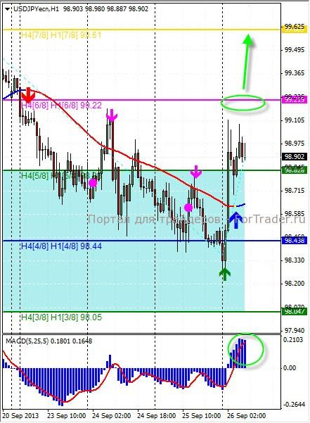 Торговая рекомендация: покупаем пару при пробитии и четком закреплении выше сильного промежуточного уровня сопротивления 99.20 малыми объемами, при этом наращиваем позиции в случае укрепления пары выше отметки 100.00 с первой целью 101.50, и более дальней целью 103.75.
