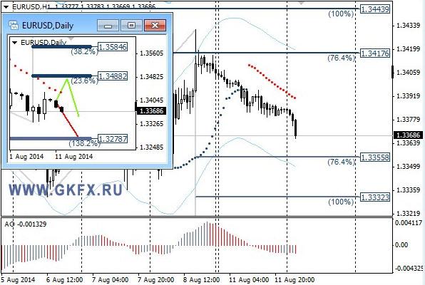 Пара EURUSD снизилась в течение дня на ожиданиях слабых данных по Еврозоне, которые могут вынудить ЕЦБ принять дополнительные меры по стимулированию экономики. Такие действия ЕЦБ приведут к более масштабному снижение евро, поэтому на ожиданиях пара продолжит снижение. Сегодня выйдут данные ZEW, и на этих данных пара может усилить вчерашнее снижение. На эту неделю традиционно рассматриваю два варианта возможного движения цены, основной красный и альтернативный зеленый. Значимые уровни на сегодня отмечены на часовом графике. Индикатор АО находится в отрицательной зоне и снижается, указывая на желание пары двигаться вниз в данное время. Индикатор тренда указывает на снижение. Продажи от 1,3375/80 с целями 1,3355, 1,3335 и 1,3295.