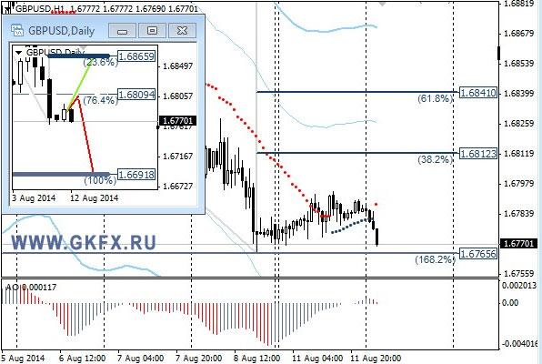 Пара GBPUSD в понедельник торговалась в узком диапазоне. Однако сегодня утром возобновила снижение и уровень 1,6765 станет ключевым в дальнейшей динамике. Развязка по открытой позиции близка. Стоп по позиции можно переместить на отметку 1,6800. На эту неделю традиционно рассматриваю два варианта возможного движения цены, основной красный и альтернативный зеленый. Значимые уровни на сегодня отмечены на часовом графике. Индикатор АО находится у нуля, указывая на неопределенность. Индикатор тренда указывает на снижение. Держим продажи от уровней 1,6810/15с целью 1,6740.