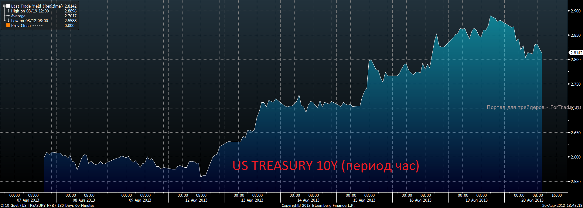 Ключевое событие сегодняшнего дня это публикация в 22.00 протокола последнего заседания Федерального комитета по открытым рынкам (FOMC), однако российские площадки будут отыгрывать данный факт уже в четверг.  Самое интересное, не понятно, почему публикацию протокола так многие ждут и что там нового могут увидеть инвесторы, ведь глядя на продажи на долговом рынке США, которые начались ещё с мая, уже все прекрасно готовы к сокращению текущей программы выкупа активов.