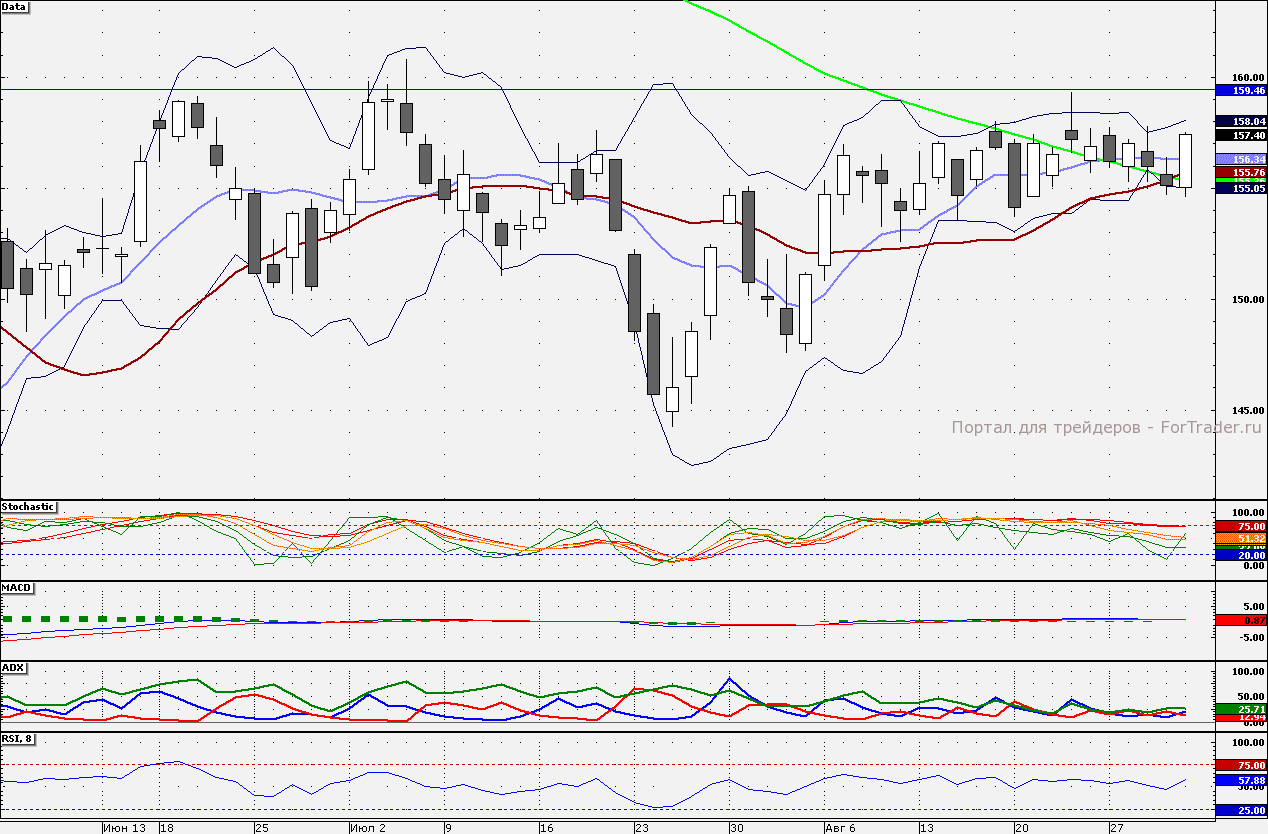 Ближайшие уровни сопротивления: 158,00/159,00/160,00