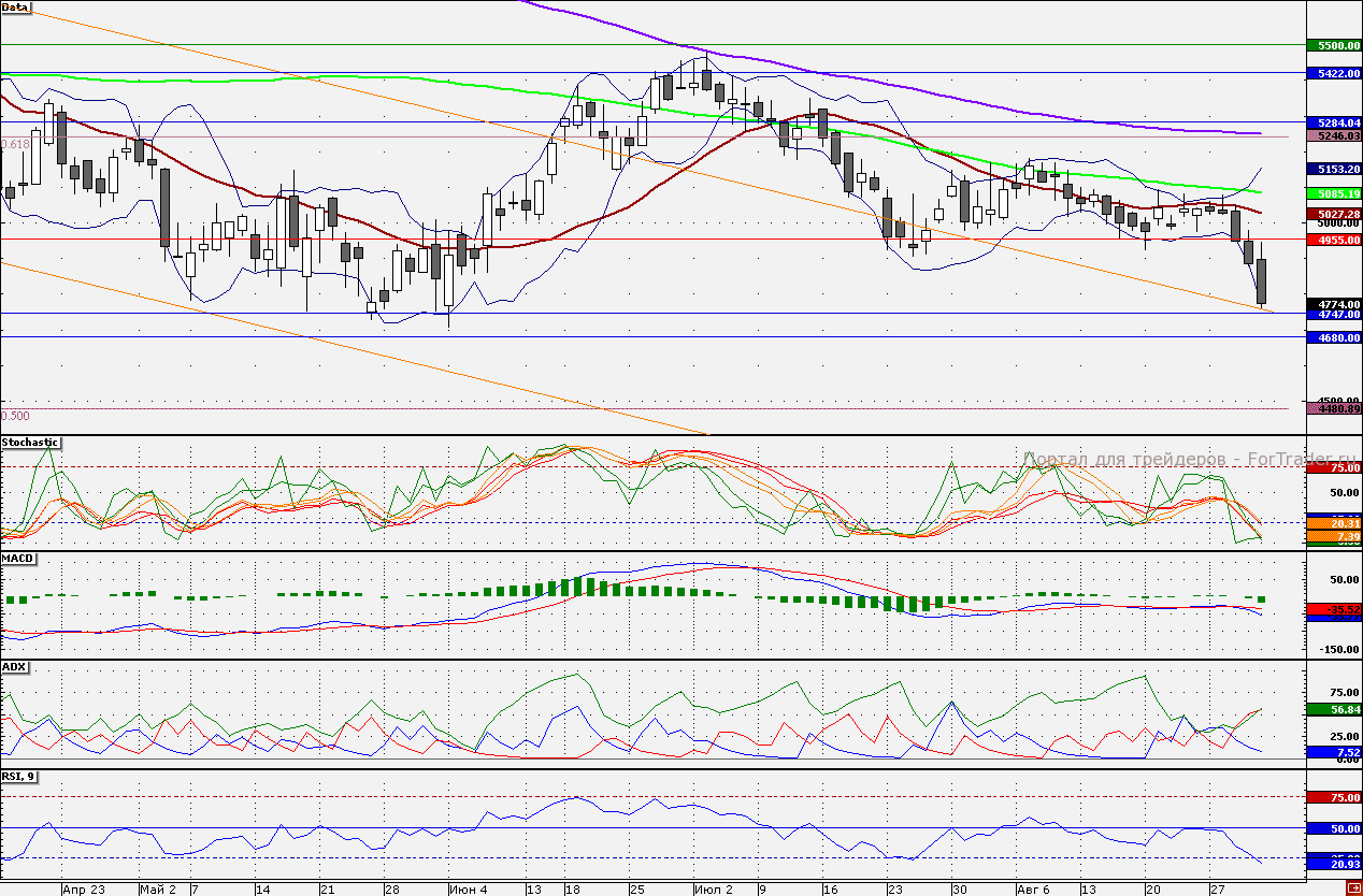 Ближайшие уровни поддержки: 4750,00/4680,00