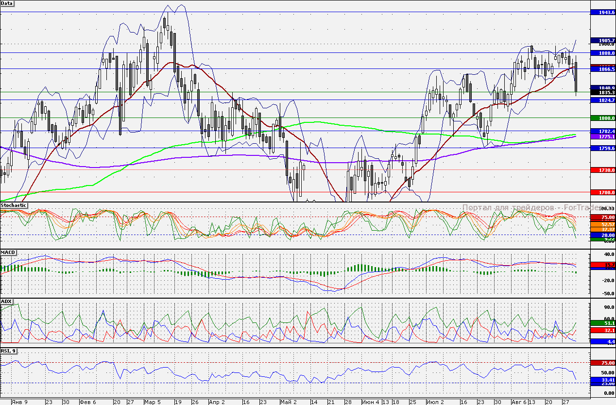Ближайшие уровни поддержки: 1830,00/1825,00/1800,00