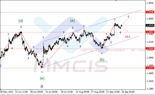 Поэтому в качестве основного сценария аналитики рассматривают возможность повышения курса в рамках волны «5». Подтверждением данного сценария станет обновление максимума на отметке 1.3568. Альтернативный сценарий предполагает возобновление снижения котировок в направлении отметки 1.3401 в качестве усложненной волны «Alt:4».