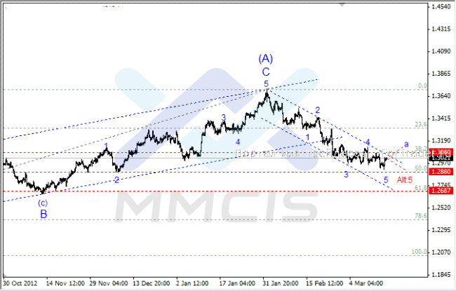 По мнению технических аналитиков, такая динамика может свидетельствовать о завершении нисходящего импульса и начале коррекции. Поэтому в качестве основного сценария на сегодня можно рассматривать вероятность тестирования ключевого сопротивления на уровне 1.3080, с последующим ростом курса к 31-й фигуре в виде волны «а». В качестве альтернативного сценария аналитики рассматривают возможность возобновления нисходящего движения к уровню 1.2880 в рамках усложненной структуры волны «Alt:5».