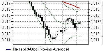 ИнтерРАО (+1,73%) – акции вчера закрепились выше средней полосы Боллинжера дневного графика (0,0136 руб) и сегодня пытаются продолжить рост, хотя в целом выглядят уже не столь уверенно. Технические индикаторы дают смешанные сигналы, предупреждая, что о силе «быков» пока говорить не приходится, но до пробития уровня 0,0136 руб «длинные» позиции имеет смысл сохранять с расчетом на развитие роста в район 0,016 руб (линия EMA55 и верхняя полоса Боллинжера).