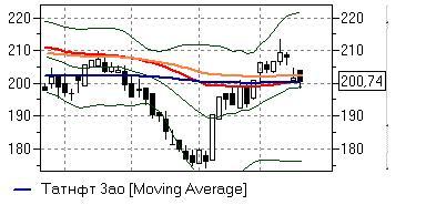 Татнефть ао (-0,36%) – акции торгуются в районе ключевых линий дневного графика (199-202 руб), от способности удержать которые будет зависеть краткосрочное направление движения. Технические индикаторы в целом дают негативные сигналы, не исключая развития снижения, но для подтверждения этого все же лучше дождаться закрепления ниже важных поддержек. При улучшении внешнего фона бумаги вполне могут приостановить нисходящее движение от указанных отметок.