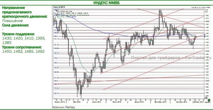 Российские индексы: выход в диапазон 1450 пунктов по ММВБ