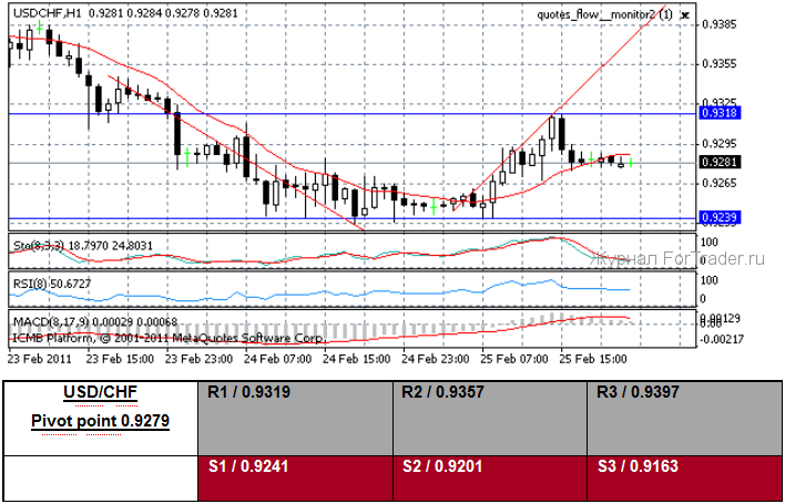 (Bloomberg) — Швейцарский франк упал против большинства основных валют, поскольку ослабло беспокойство, что политическая суматоха в Ливии разрушит глобальные нефтяные рынки, уменьшая привлекательность валюты-убежища. Франк отступил от рекордно высокого уровня против доллара, так как нефть скользнула ниже $ 100 за баррель после вчерашнего заявления Саудовской Аравии, США и Международного энергетического агентства, что они могут компенсировать прерванную поставку. Фондовые индексы растут. «Торговля, которая была выгодна для швейцарца и иены в настоящее время раскручивается, так как страх вокруг поставок нефти рассеивается, «- говорит Greg Salvaggio, первый вице-президент по рынкам капитала в валютно-торговой фирме Tempus Consulting Inc в Вашингтоне. Франк обесценился на 0,2 процента до 92.81 в 5 часов вечера в Нью-Йорке после достижения ранее 92.27, самого сильного уровня, по крайней мере, с 1971 года, когда Bloomberg начал свои записи.