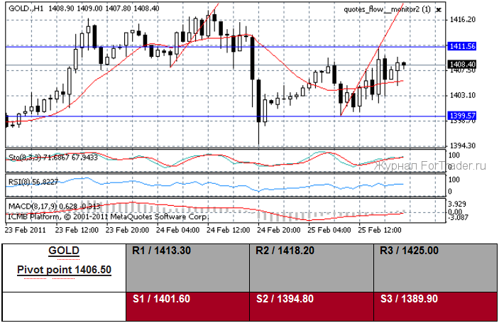 (Bloomberg) — Золото может вырасти в Лондоне, увеличивая четвертый раз подряд еженедельный рост, так как беспорядки в Ливии стимулируют спрос на металл в качестве альтернативной инвестиции. Золото повысилось на 1.0% на этой неделе, демонстрируя длинное еженедельное стремительное движение с октября. Ливийский лидер Муаммар Каддафи укрепил свою защиту танками в столице Триполи, так как противники усилили контроль за богатым нефтью востоком страны. «Так как протесты в Ливии активизировались, мы ожидаем, что золото и серебро будут подкреплены усиливающимся требованием спроса безопасности, » — заявил сегодня в докладе James Moore, аналитик TheBullionDesk.com в Лондоне. Золото на рынке биржевых продуктов вчера упало на 5.29 метрических тонн до 2010.1 тонн, самого низкого уровня с 4 июня, согласно данным, собранным Bloomberg от 10 поставщиков. Авуары достигли рекордных 2114.6 тонн в декабре. Серебряные ETP активы повысились на 26.21 тонну до 14739.66 тонн, самого высокого уровня с 20 января, — показали данные четырех поставщиков. Серебро с немедленной поставкой увеличилось на 1,6 процента до $ 32.6525 за унцию. Оно поднялось 22 февраля до $ 34.3187, самой высокой цены с марта 1980 года, металл достиг рекордной отметки в $ 50,35 в Нью-Йорке. Палладий вырос на 1.2 % до $ 784,13 за унцию. 21 февраля он коснулся 10-летнего максимума $ 862,25. Платина выросла на 0,5 процента по $ 1790.25 за унцию.
