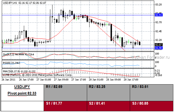Иена повысилась против доллара США вчера, когда доллар протестировал цену вокруг уровня 81,98? и был ограничен уровнем 82,90?. Данные, выпущенные в Японии вчера вечером, дали трейдерам понять, что экономический климат в этой стране улучшается, включая замедление в дефляционном росте. Сообщалось, что декабрьский уровень безработицы упал ниже, к 4.9 % от предшествующего чтения 5.1 %, в то время как расходы домохозяйств в декабре упали на 3.3 % y/y. Предварительный индекс потребительской инфляции в Токио улучшился к -0.1 % (y/y) в основном показателе, и показал — 0.3 % (y/y) в индексе, исключающем продукты питания и энергию. Кроме того, декабрьский национальный CPI, основной показатель, был во флете и улучшился к -0.7 % (y/y) в индексе, исключающем продукты питания и топливо. Экономисты ждут дополнительных данных о CPI первого квартала, чтобы определить, жизнеспособно ли уменьшение в дефляционных давлениях. Другие данные, опубликованные ночью, показали, что индекс розничных продаж в декабре упал на 4.1 % в месячном базисе и на 2.0 % в годовом, «оба более слабые, чем ожидалось». Фондовый индекс Nikkei 225 потерял 1.13 % и закрылся на отметке 10 360,34?. Предложения доллара США на уровне 84,60?.