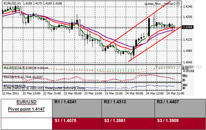 Евро продвинулся против доллара впервые за три дня, так как началась двухдневная встреча лидеров Европейского союза по вопросу принятия мер для решения долгового кризиса региона. Валюта 17 стран, выросшая против иены на предположении, что, Европейский центральный банк готов поднять стоимость кредита, перевесила финансовую неразбериху. Евро повысился как раз, когда агентство Fitch Ratings снизило рейтинг кредитоспособности Португалии после того, как премьер-министр государства Хосе Сократ вчера ушел в отставку. Валюты стран с экономическим ростом выше среднего, таких как Новая Зеландия и Канада, продвинулись, так как цены на сырье и акции начали ралли. “Мы сейчас покупаем слухи, что ставки EЦБ увеличатся, а затем мы продадим факт, когда это осуществится,” — сказал Marc Chandler, директор глобальной валютной стратегии в Brown Brothers Harriman & Co. в Нью-Йорке. “Евро все еще собирается сделать новые максимумы”. Chandler сказал в интервью Bloomberg Television в “Surveillance Midday” с Tom Keene, что единая валюта может достичь 1,45$ — 1,47$.