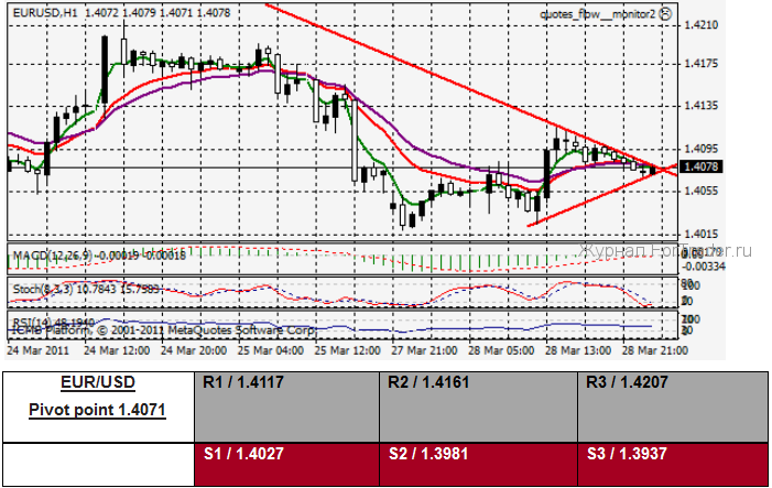 (Bloomberg) — Снижение евро на прошлой неделе против доллара может быть частью “паттерна падения,” и валюта может понизиться и далее, если пробьет уровень 1,3975$, — сообщил Commerzbank AG, объясняя торговые паттерны. Начальный, так называемый, уровень поддержки составляет 1.400$, который представляет 20-дневное скользящее среднее значение движения евро, написала в примечании, отправленном по электронной почте сегодня, Карэн Джонс, технический аналитик находящегося в Лондоне Commerzbank, Следующий уровень, который будет наблюдаться, составляет 1,3975$, — сообщила она. “Пробой здесь спровоцирует понижение к $1.3752/1.3718 и, в конечном счете, к 1.3430$,” — написала она. Не ясно, является ли недавнее движение евро “консолидацией или моделью падения на данном этапе, но мы подозреваем последнее”. Евро упал на 0.7 процента против доллара на прошлой неделе, самое большое снижение с недели, которая закончилась 7 января, сокращая свою месячную прибыль против американской валюты к 1.82% .