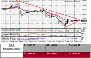 (Bloomberg) — Золото уменьшилось, так как признаки улучшения американской экономики обуздали его апелляцию в качестве альтернативной инвестиции и поскольку некоторые инвесторы посчитали, что ралли на прошлой неделе к рекорду было преувеличенным. Слиток со срочной поставкой потерял 0.9%; цена, которая достигла 24 марта рекордного значения 1 447.82$, остается без изменений на этот квартал. Апрельский контракт на поставку понизился на 0.6 процента к 1 419,2$ на Comex в Нью-Йорке. “Сильные американские экономические данные предоставили некоторым инвесторам хорошее оправдание получить прибыли после того, как золото побило рекорд, ” — сказал Hwang Il Doo, старший трейдер в Korea Exchange Bank Futures Co. в Сеуле. “Слиток может скоро возобновить ралли, так как существует много неопределенности, не исчезающей вокруг рынка: еврозональные проблемы выплаты долгов и ближневосточное волнение, так же как радиоактивные осадки от японского землетрясения”.