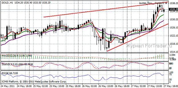 (Bloomberg) — Фьючерсы на золото выросли до отметки трехнедельного максимума, и серебро также поднялось, так как падение доллара стимулировало спрос на сырьевые товары. Индекс 19 сырьевых материалов Thomson Reuters / Jefferies CRB демонстрировал рост третий недельный прирост подряд после того, как лидеры «восьмерки» заявили, что глобальная экономика укрепляется. Доллар упал на 1% по отношению к корзине из шести основных валют. Золото получило 27% в прошлом году, достигнув рекордной отметки $ 1577,40 за унцию 2 мая. «Рисковые активы снова пользуются спросом, и те, кто покупают золото, когда доллар слабеет, переходят на них», — сказал Адам Клопфенстейн, старший стратег-аналитик Lind-Waldock, брокер в Чикаго. «Но ?? в портфеле ещё есть место для золота».