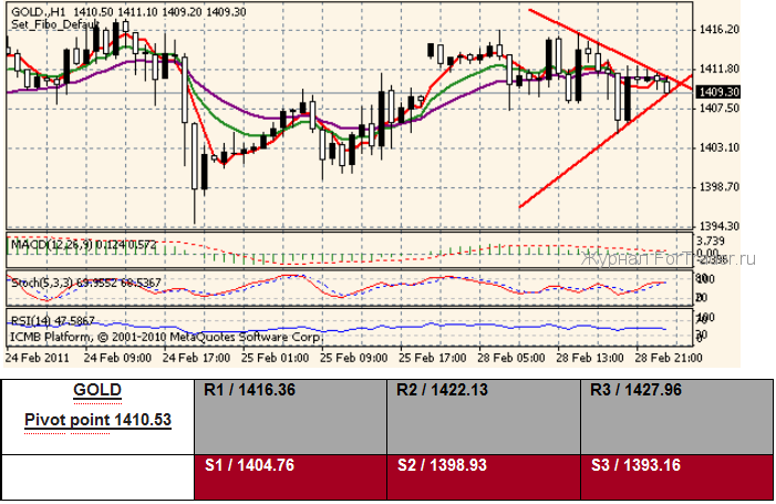 (Bloomberg) — Золото повысилось в Нью-Йорке, покрывая лучшее ежемесячное увеличение с апреля, поскольку возрастающая инфляция и суматоха в Северной Африке и на Ближнем Востоке повысили спрос на альтернативный актив. Фьючерсы на золото с поставкой в апреле добавили 60 центов к закрытию по $1,409.90 за унцию в 13.42 на Comex в Нью-Йорке. Цена увеличилась на 5.7% в феврале. Цены на золото, в прошлом году, повысились на 30%, в Нью-Йорке, по отношению к 10-ти годовому росту. 7 декабря цена достигла рекордных $1,432.50. Увеличение цен на продукты питания и товары способствовало восстаниям на Ближнем Востоке и в Северной Африке.