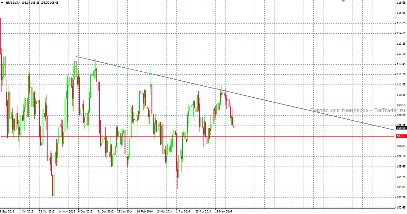 К концу недели рынком нефти полностью завладели «медведи», нефть WTI с поставкой в июле торгуется в районе $102 за баррель, нефть марки Brent в районе $108 за баррель. Техасская нефть не удержалась на более высоких ценовых уровнях даже несмотря на то, что данные по запасам оправдали ожидания инвесторов. Так, согласно информации Энергетического информационного агентства, по итогам прошлой недели запасы сырой нефти снизились на 3,431 млн баррелей. Между тем, запасы дистиллятов возросли на 2,012 млн баррелей, запасы бензина на 210 тысяч баррелей.