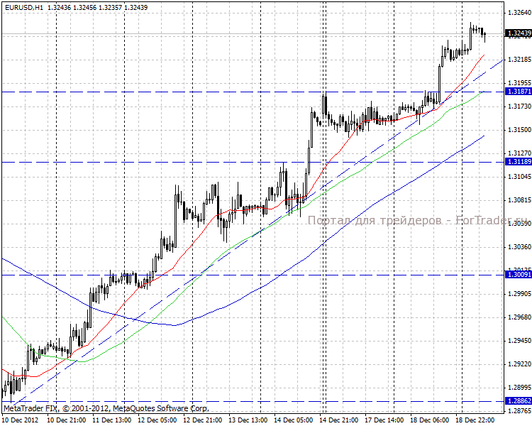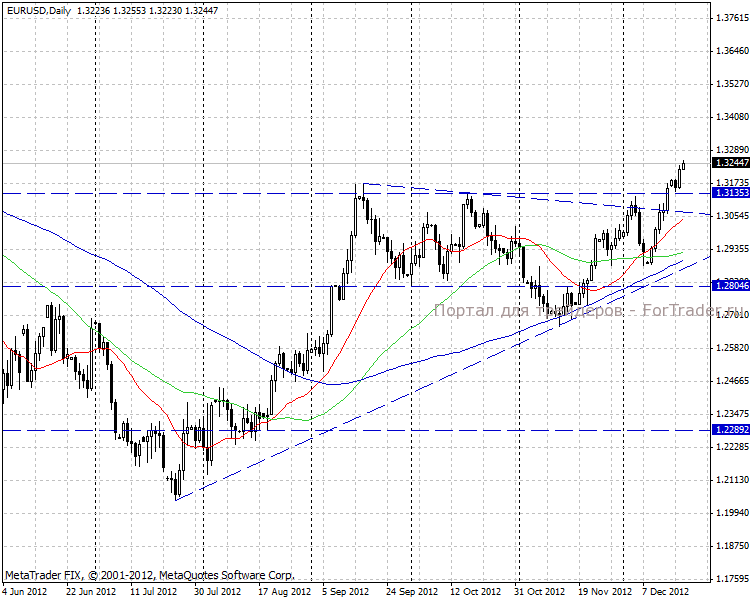 Продвижение в переговорах в американском Конгрессе привело к росту не только фондового рынка США, но и азиатский и европейский рынок. В связи с ослаблением доллара, валютная пара EUR/USD пошла на покорение новых вершин, вчерашняя торговая сессия закрылась на отметке 1,32238.