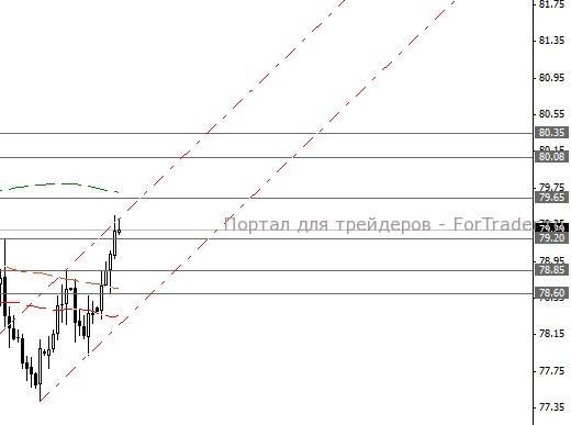 Пара USD/JPY ограничена сопротивлениями вблизи 79.65, 80.08 и 80.35, а также поддержками 79.20, 78.85 и 78.60.