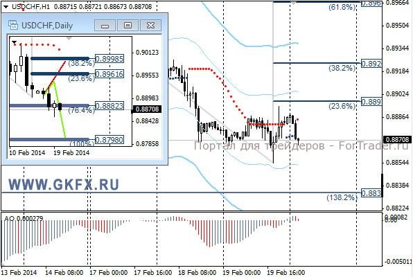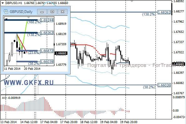 Пара EURUSD снижалась после того, как протоколы последнего заседания ФРС показали твердое намеренье членов комитета продолжать сокращение программы стимулирования экономики США. В то же время снижение пары было ограниченным, так как обсуждался вопрос повышения процентных ставок, и большинство членов комитета считают целесообразным начать повышение только в 2015 году. Также в протоколах не учтены последний ряд слабых показателей, которые указывают на замедление восстановления экономики США и на этом фоне доллар может продолжить терять позиции. По рекомендации сделка исполнилась, ждем достижения целей. На эту неделю традиционно рассматриваю два варианта возможного движения цены, основной красный и альтернативный зеленый. Значимые уровни на сегодня отмечены на часовом графике. Индикатор АО находится в отрицательной зоне и растет, указывая на коррекцию перед возможным продолжением снижения. Индикатор тренда указывает на снижение. Держим покупки от 1,3725 с целями 1,3745, 1,3770 и 1,3795.