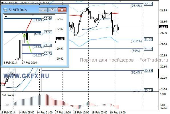 Цены на золото не смогли преодолеть ключевую отметку 1322,0 и направились вниз, не исполнив сделку по рекомендации. Отчасти этому поспособствовали протоколы последнего заседания ФРС. В протоколах прозвучали намеки, что может потребоваться более скорое поднятие процентных ставок и, хотя это прозвучало от единичных членов комитета, рынок драгметаллов дрогнул. Основное о чем свидетельствовали протоколы это твердое намеренье членов комитета продолжать сокращение программы стимулирования экономики США. Традиционно делаю два варианта движения цены на неделю, основной красный и альтернативный зеленый. Значимые уровни на сегодня отмечены на часовом графике. Индикатор АО находится в отрицательной зоне и снижается, указывая на желание инструмента двигаться вниз в данное время. Индикатор тренда указывает на снижение. Вне рынка.