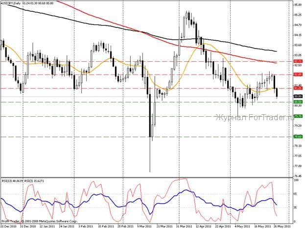 Доллар против франка продолжает покорять новые минимумы. Ключевым для пары является диапазон 0,8460 – 0,8560. В случае пробития 0,8560 пара вероятно вырастет до отметки 0,8645. Уверенная торговля выше 0,8645 откроет для пары возможность вырасти к 0,8745. Преодоление отметки 0,8460 откроет для пары возможность установить новые минимумы. Прогнозировать их значения не представляется возможным. Скользящие средние на недельном, дневном и четырехчасовом графиках указывают на снижение пары. RSI на недельном и дневном графиках указывает на конвергенцию – очень тревожный сигнал для продавцов, на четырехчасовом таймфрейме индикатор так же указывает на перепроданность. Мы продолжаем занимать медвежью позицию по данной валютной паре и рекомендуем ее к продаже при попытке прорыва к 0,8560 и 0,8645.