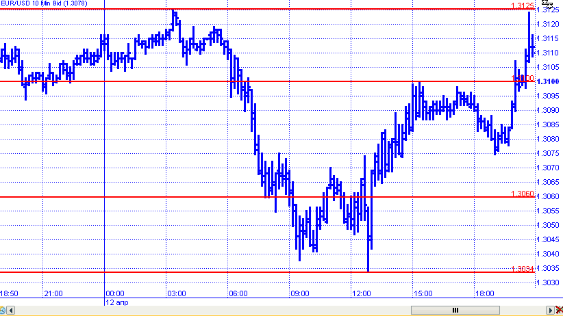 В пятницу пара снова не смогла определиться с направлением. В первой половине дня котировки закрепились ниже уровня 1,31 и продолжили падение в рамках которого попытались преодолеть поддержку 1,3040, но это им не удалось. Отметив минимум на 1,3034 пара возобновила рост и к завершению дня вернулись к отметке 1,3125.