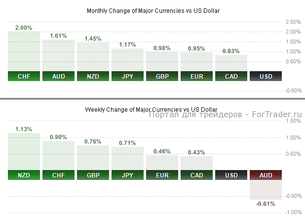 По итогам прошедшей недели доллар США снизился к большинству основных валют, кроме австралийского доллара, попав под давление после выступления председателя ФРС Джанет Йеллен и выхода ряда слабых данных по США. Наибольший рост к доллару по итогам недели показал новозеландский доллар (более 1%). По итогам февраля доллар также выглядит абсолютным аутсайдером, потеряв 2% по индексу доллара и снизившись ко всем основным валютам. Больше всего вырос за месяц к доллару швейцарский франк (+2%). А с начала года лидирует в росте к доллару японская йена (+3,5%), тогда как наибольшее снижение показал канадский доллар (-4%).