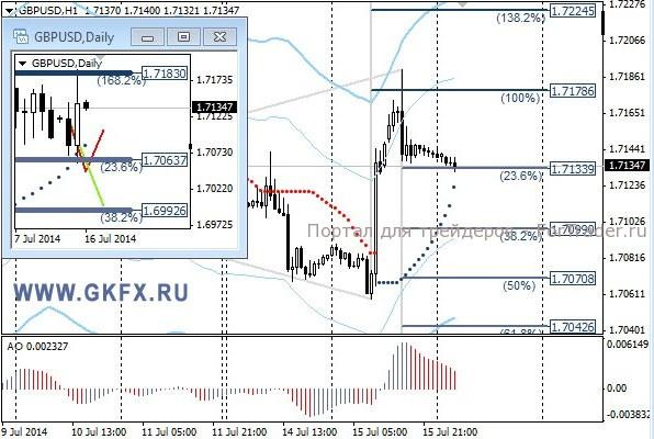 Цены на золото продолжили снижение в ходе выступления председателя ФРС Джанет Йеллен в Конгрессе. Ключевым моментом выступления стали слова о более раннем повышении процентных ставок, если данные из США продолжат улучшаться. Это дало повод для продолжения снижения золота. Привлекательность доллара будет только расти после таких заявлений, а золото продолжит испытывать трудности при росте. Фиксация длинных позиций в понедельник была оправданной. Драгметаллы отступили от планов на эту неделю, совершено в противоположном направлении. Произошедшие события указывают на продолжение снижения золота, поэтому стоит рассмотреть продажи. Традиционно делаю два варианта движения цены на неделю, основной красный и альтернативный зеленый. Значимые уровни на сегодня отмечены на часовом графике. Индикатор АО находится в отрицательной зоне и растет, указывая на коррекцию перед возможным продолжением снижения. Индикатор тренда указывает на снижение. Продажи от 1305,0 с целями 1298,0, 1285,0 и 1280,0.