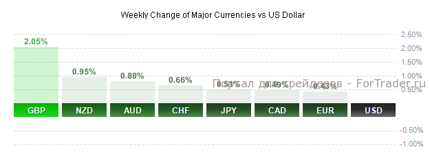 По итогам прошедшей недели доллар США снизился ко всем основным валютам, потеряв около 0,7% по индексу доллара. Основное снижение наблюдалось в течение двух последних дней недели. Индекс доллара опустился в район 7-недельных минимумов на фоне сильных снегопадов, обрушившихся на штаты юга и северо-востока США и слабой статистики по розничным продажам и промпроизводству, которая вызывает сомнения в возможности устойчивого восстановления экономики США в этом году. Наибольший рост к доллару за неделю показал британский фунт — более 2%.