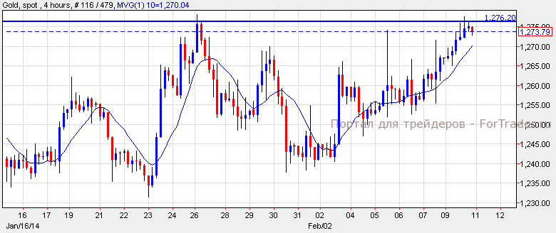 Золото подорожало на 0.52% закрывшись на отметке $1,273. Согласно техническому анализу 5-часового графика, золото достигло сильного уровня сопротивления $1,276 и формирует модель «двойная вершина». Так как восходящий тренд продолжается с конца января, золото может удерживаться на этом уровне или вырости к отметке $1,285. Если золото не сформирует модель «двойная вершина», оно может упасть к отметке $1,2600.