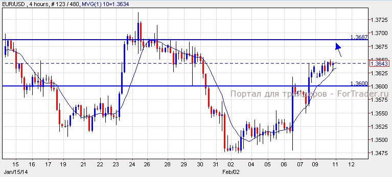 Евро выросло против доллара США, так как индекс доверия инвесторов от Sentix показал хорошие результаты — 13.3 против прогнозируемых 10.3, не смотря на то, что данные о промышленном производстве Франции и Италии совсем не оправдали прогнозов. Согласно техническому анализу, пара EUR/USD торгуется выше уровня поддержки 1.3600. Пока пара держится выше этого уровня, она может достичь отметки 1.3680. Индекс скользящие средние 20 также поддерживает восходящий тренд.