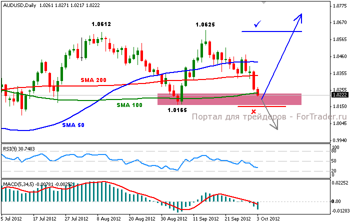 Пара тестирует район поддержки 1.0165-1.0230, где проходят 100-дневная SMA, а также уровень 38.2% ФИБО коррекции от роста 0.9580-1.0625. Если она удержится выше нижней границы района, ожидается возобновление роста выше 200- и 50-дневной SMA к сопротивлению в районе 1.0610-1.0625, прорыв выше которого откроет дорогу среднесрочному росту к сопротивлению 1.0855, а также, вероятно, далее к максимуму 1.1080. В то же время, падение и закрепление ниже поддержки 1.0165 может спровоцировать снижение в район паритета.