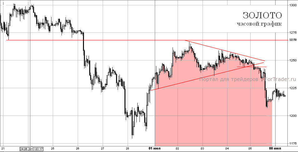 Прошедшая неделя на графике золота заканчивается классической свечой продолжения тренда, в нашем случае — тренда нисходящего. Технический отскок наверх в понедельник/вторник на фоне роста физического спроса был окончательно сломан в момент публикации сильных отчетов с рынка труда США в пятницу. Несмотря на рост спроса со стороны ряда крупных импортеров, экперты ожидают рост давления на цену металла со стороны сильного доллара.