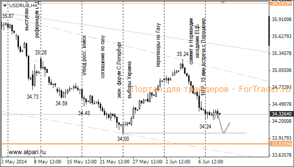 Евро вплотную приблизился к важной поддержке 46,31. От неё возможен отскок. Доллару необходимо пройти ещё 32 копейки, чтобы протестировать уровень 34 ровно. Драйверов для роста рубля сейчас нет, поэтому снижение доллара может затянуться до конца недели. Скоро начнётся очередной период уплаты налогов, что дополнительно будет способствовать укреплению рубля.