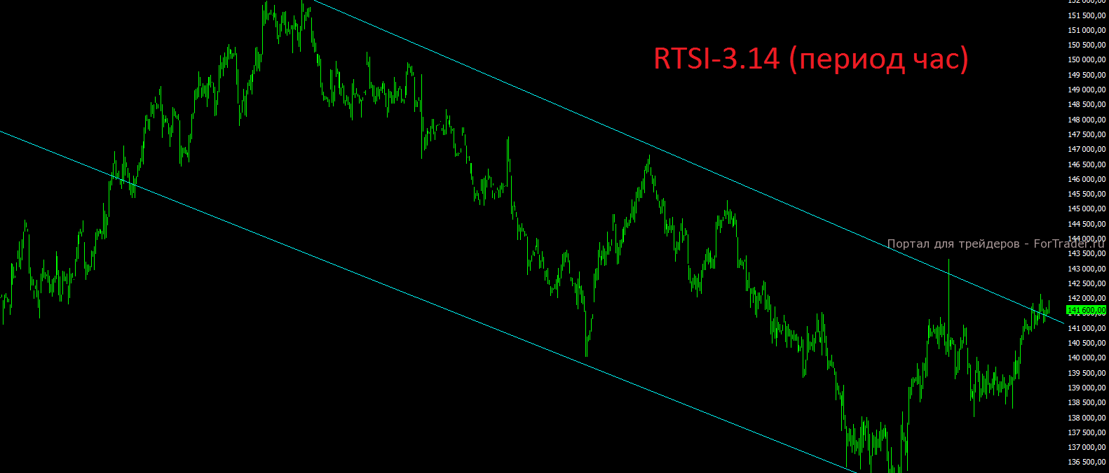 Фьючерс на индекс РТС сегодня также будет находиться в узкой консолидации вблизи отметки 142000. С технической точки зрения мы можем запросто увидеть и выход вверх из понижательного канала и точно также вновь заход в него, поэтому лучший вариант – постоять до 23.00 в стороне.