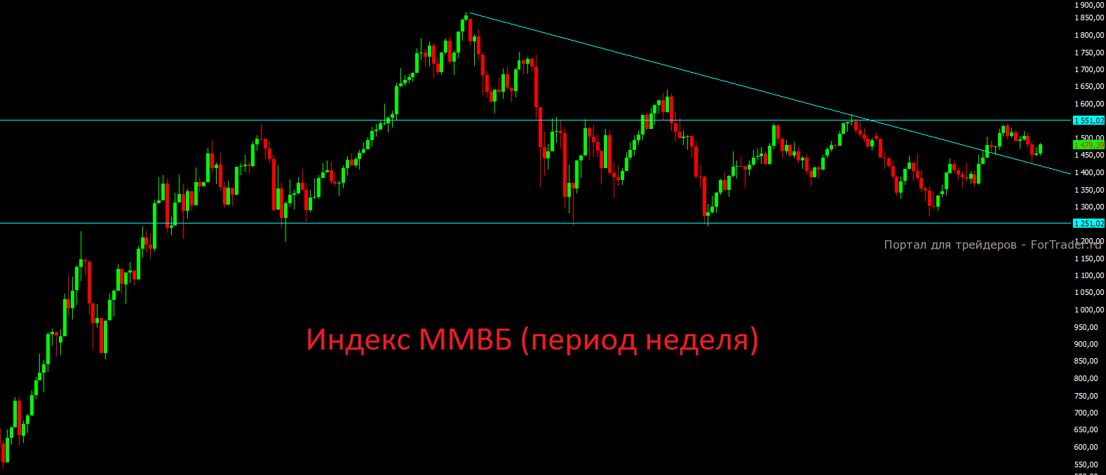 С технической точки зрения российский индекс ММВБ подошёл к уровню сопротивления на отметке 1480, откуда вполне может начаться коррекция. С другой стороны, на недельном периоде явно рисуется разворот индекса ММВБ вверх и если четверг будет закрыт на положительной территории, то надо будет присмотреться к покупкам акций с целью до конца года.